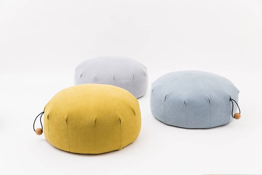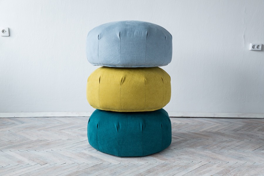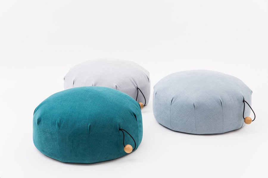 A pouf which invites you to sit and relax. Inspired by organic structures and underwater colours.