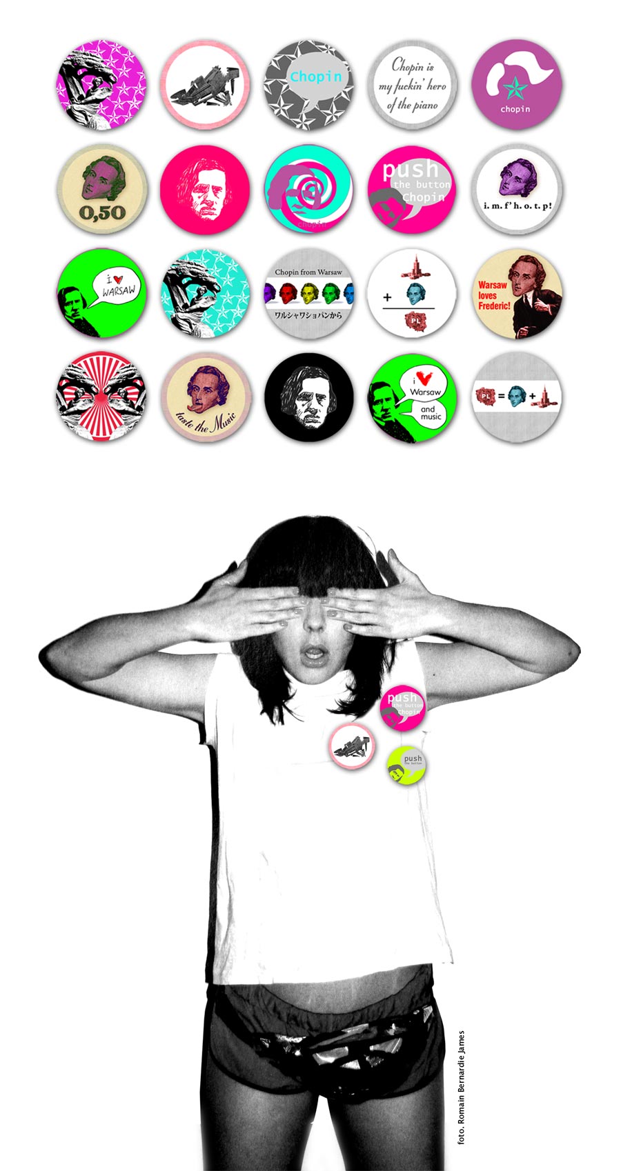 Przypinka z pozytywką, po naciśnięciu grająca remiksy utworów Fryderyka Chopina. W przewrotny i pozbawiony nadęcia sposób konfrontuje nas z pop kulturą i twórczością Chopina.