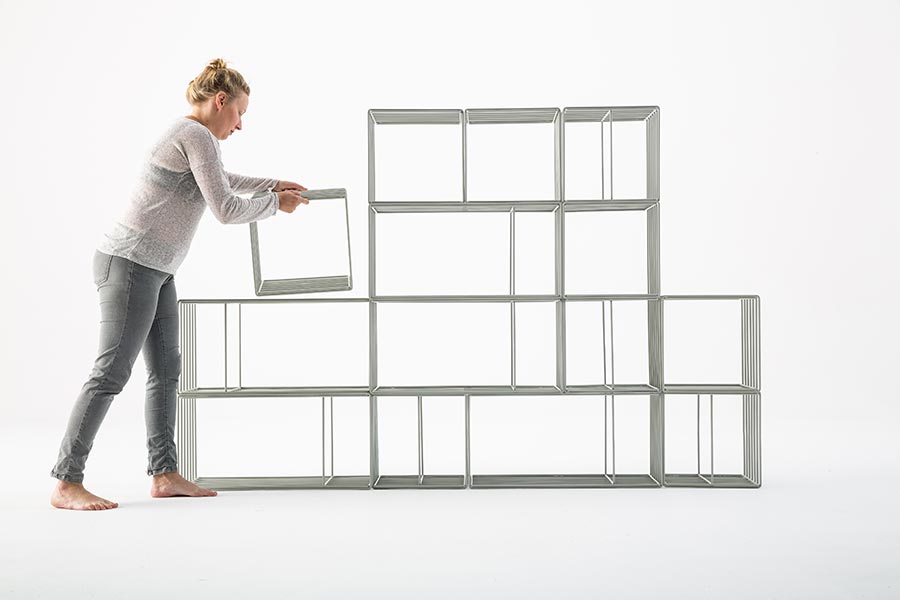 Prom dzięki zastosowaniu modułowej konstrukcji pozwala użytkownikowi na samodzielne decydowanie o ostatecznym kształcie mebla. Trzy rodzaje modułów uzupełnione o drewniane półki umożliwiają nieskończoną ilość kombinacji. Moduły mogą funkcjonować samodzielnie lub tworzyć ażurową meblościankę.