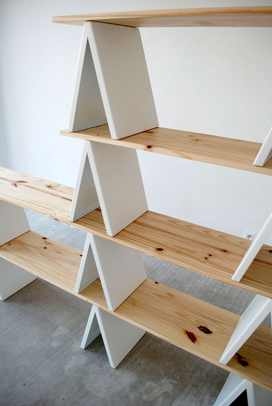 System 2 modułów: metalowego wspornika oraz drewnianej półki, dzięki którym w dowolny sposób możemy budować meblościankę.