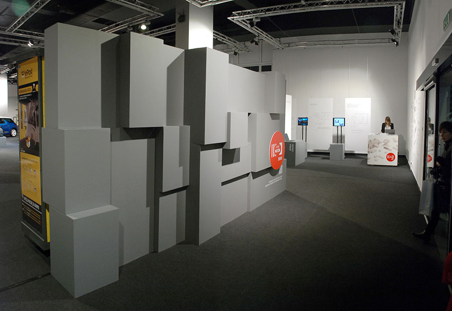 The previous year’s grid designed had also worked in 2012, allowing to fit all exhibitors in one hall. The grey display counters formed a great background for the products shown, with red details to brighten the whole layout.