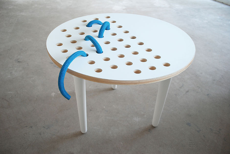 This design blends together furniture and toys. Children can weave twines, ribbons or threads through holes in the tabletop. The table helps in developing the kids’ imagination and manual skills. It’s also a piece of furniture inspired by folk tradition, and allows the user to be the creator.